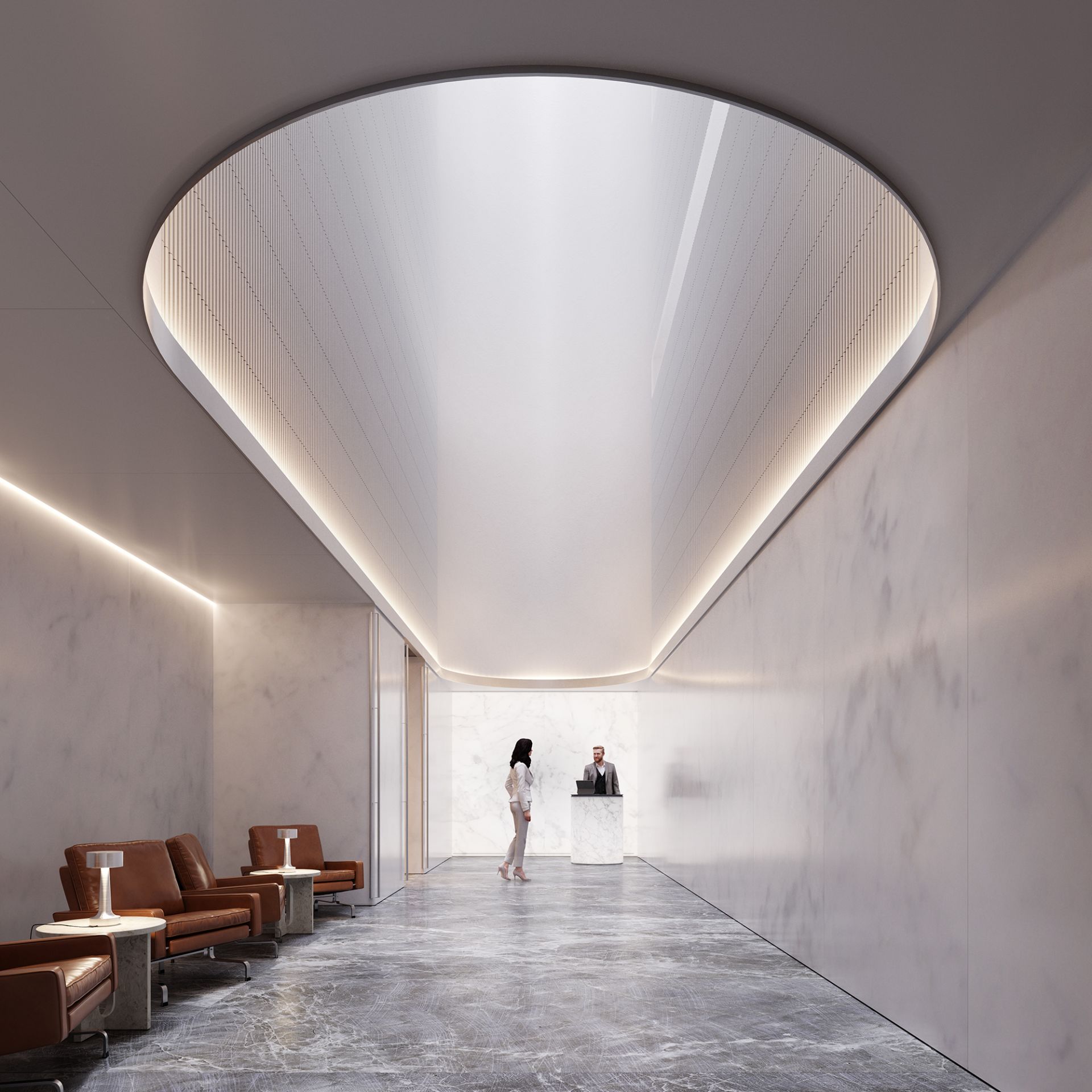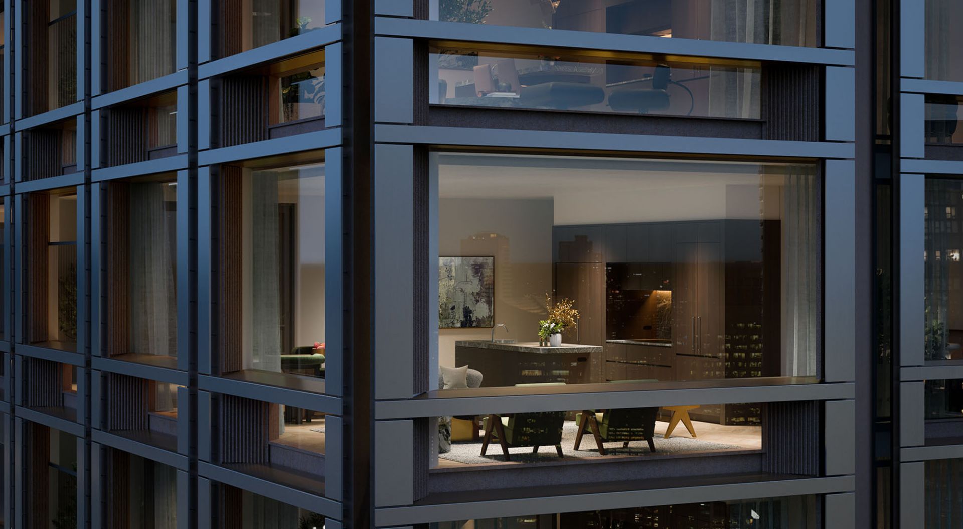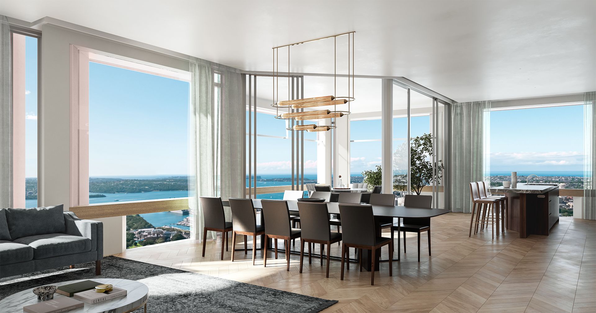 The upper-level residences feature spacious, light-filled interiors with exquisite finishes. From the sophisticated chevron-patterned timber floors to the marble-clad bathrooms, each residence embodies luxury and attention to detail. The floor-to-ceiling windows and operable wintergardens seamlessly connect the interiors with the expansive cityscape, offering residents a perfect balance of serene indoor living and vibrant urban surroundings.