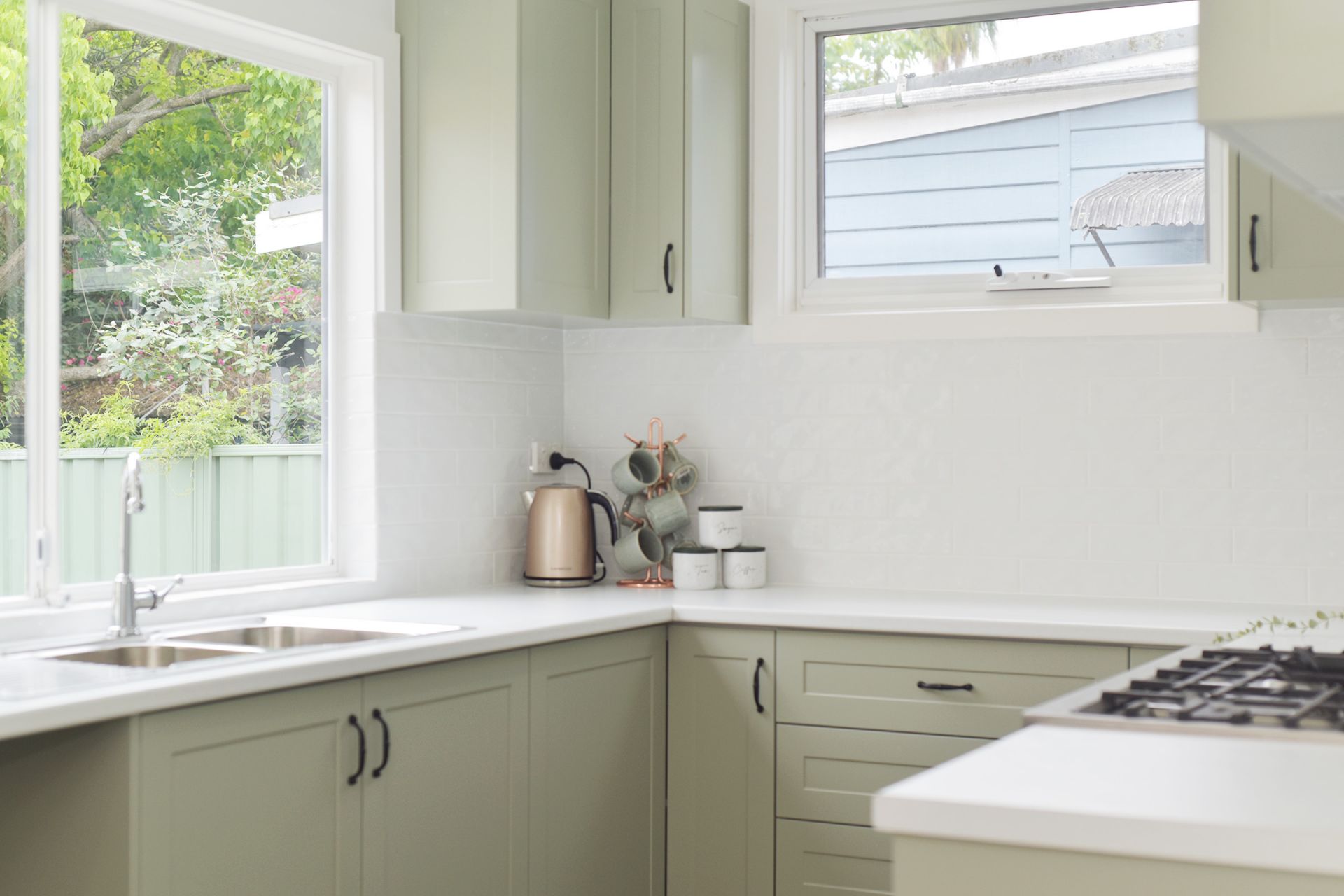 • Modern kitchen with ample storage, quality appliances and gas cooking.